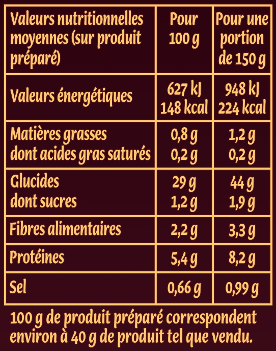 Valeurs nutritionnelles fournies à titre indicatif. Seules les valeurs nutritionnelles fournies sur l’emballage du produit font foi. Veuillez en prendre connaissance avant toute consommation.
