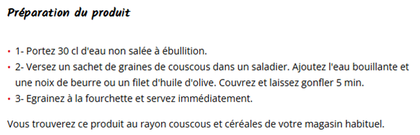 Préparation du produit