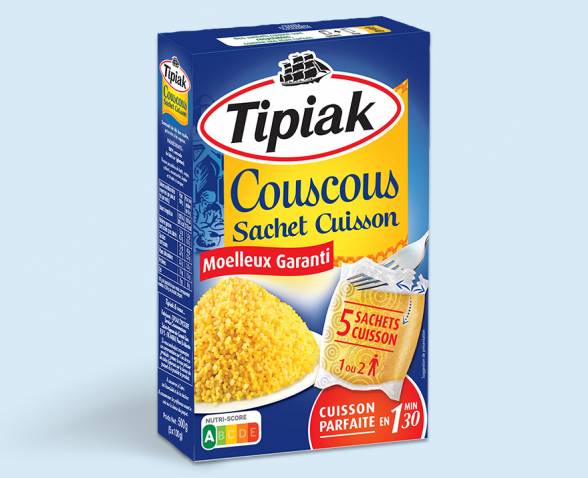 Tout le savoir faire de Tipiak réside dans la séléction des meilleurs blés pour obtenir un couscous à la belle couleur jaune, présenté dans un sachet cuisson qui permet un résultat moelleux à chaque fois délicieux.Bien avant la Civilisation, la consommation du blé dans le monde s'est exprimée sous différentes formes. En Afrique et particulièrement du Nord, le blé a été réduit en semoule puis roulé sous forme de minuscules billes : le couscous. Il a été adopté depuis par la France pour en faire l'une de ses céréales préférées.100% naturel, tout simplement de la semoule de blé dur qui a été précuite puis roulée à la vapeur, présentée en sachet cuisson.