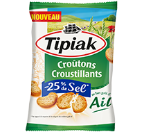 Avec sa gamme de croûtons, Tipiak propose des croûtons bien dorés pour vos apéros, vos soupes ou vos salades fait maison. Des petits croûtons nature, parfumés à l’ail, aux herbes de Provences, au fromage ou bien aux fines herbes, il y en a pour tous les goûts ! Réduire