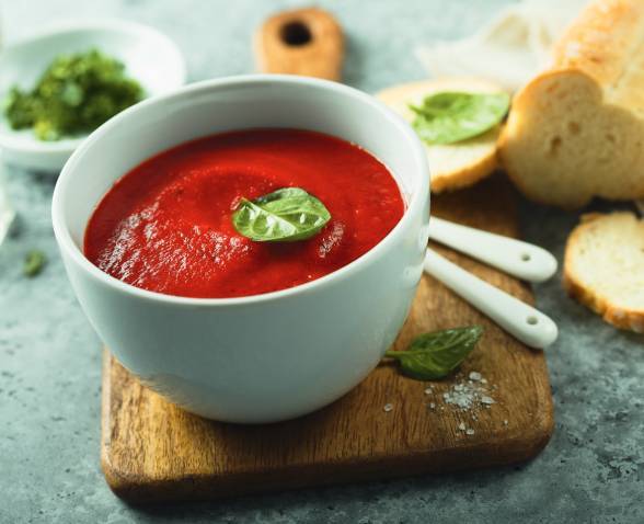- Dans une casserole, faites revenir l’oignon et l’ail à l’huile d’olive, ajoutez les poivrons et les tomates, recouvrez d’eau et laissez cuire 20 min.